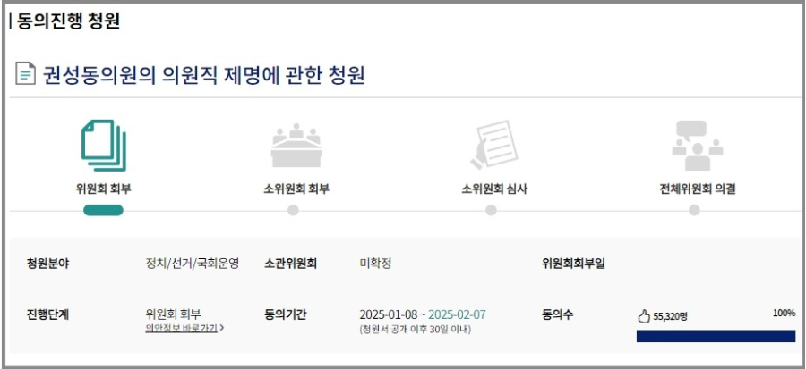 국민동의청원은 등록 후 30일 이내에 5만 명 이상이 동의하면 국회 소관 상임위원회에서 해당 안건을 심의하게 됩니다. 이번 청원의 빠른 성사는 권 의원에 대한 국민적 비판 여론이 얼마나 거센지를 여실히 보여줍니다.