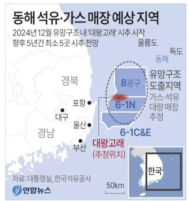 대왕고래 유망구조는 석유와 가스가 대량 매장될 가능성이 있는 7곳의 후보 중에서도 가장 유망한 위치로 평가받아왔습니다.