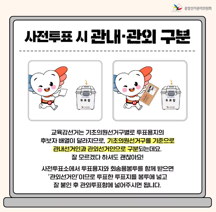 사전투표 시 관내 투표와 관외 투표에 관해 궁금해하시는 분들 많으시죠? 아래 영상에서 자세히 확인하실 수 있습니다.