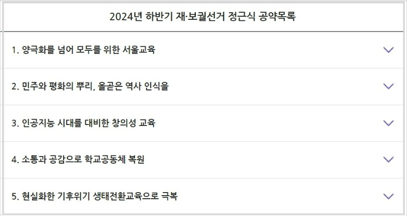 서울시교육감 후보 정근식의 주요 공약은 5가지로, 다음과 같습니다.