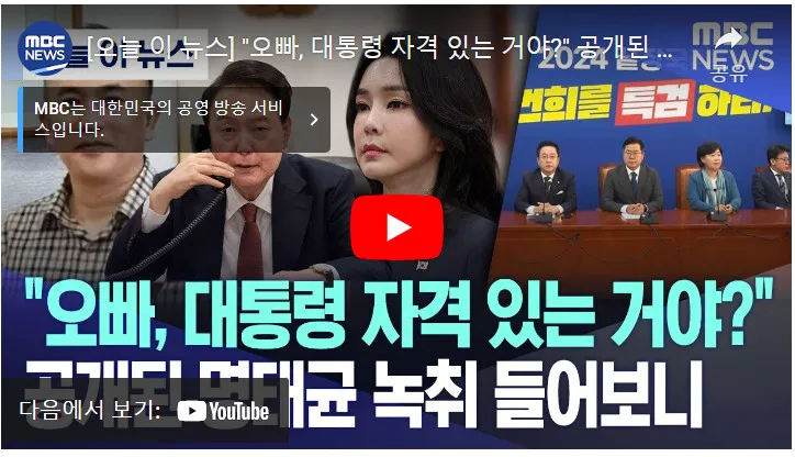 아래 영상은 긴급 기자회견 내용입니다. 4분 이후부터 녹취록이 재생됩니다. 통화 음질은 좋지 않지만, 자막도 같이 볼 수 있습니다. 들어보시죠. 특히 마지막에는 명태균이 친구에게 전하는 통화 녹취가 다시 재생됩니다. 참 듣기 민망할 정도입니다.