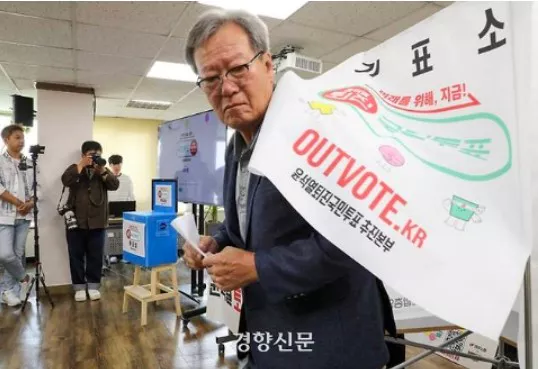 실제로 윤석열 퇴진 국민투표에 대한 참여 열기는 뜨겁습니다. 투표소에서, 거리에서 투표에 참여하는 국민들을 볼 수 있습니다.