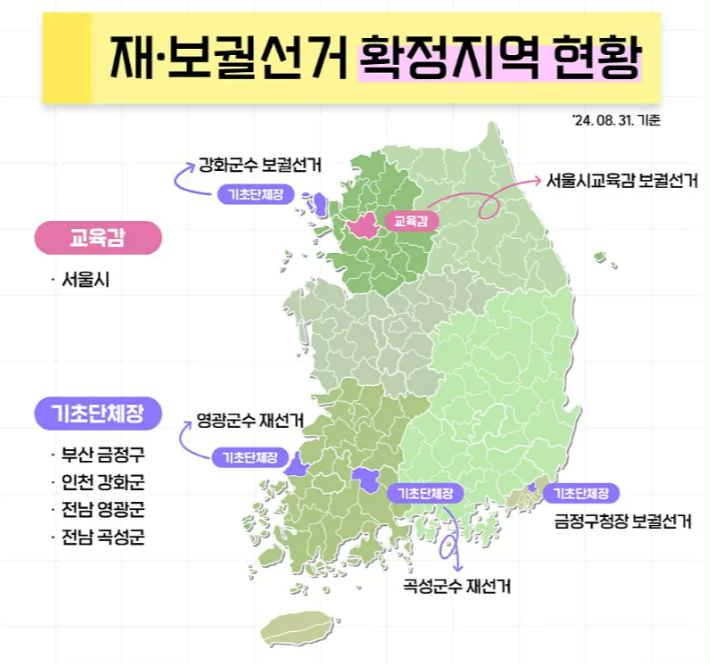2024년 10월 16일, 전국적으로 중요한 재·보궐선거가 실시됩니다. 이번 선거는 총 5개 지역에서 진행됩니다. 재보궐 선거가 진행되는 지역 5곳은 어디인지, 재보궐 선거 이유는 무엇인지 알아보고, 각 지역의 투표소 찾는 방법 정리해 보겠습니다.